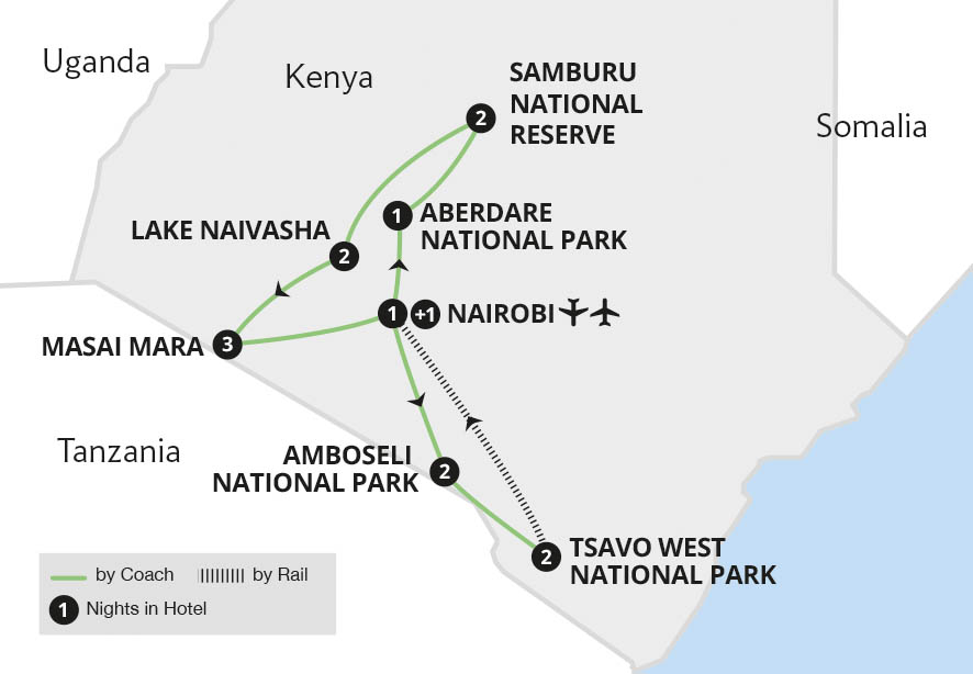 • Embark on an epic safari, including seven of Kenya’s Top Ten wildlife reserves