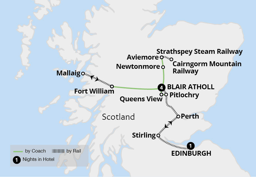 • Spend 5 nights in 3-star hotels in Edinburgh and Blair Atholl