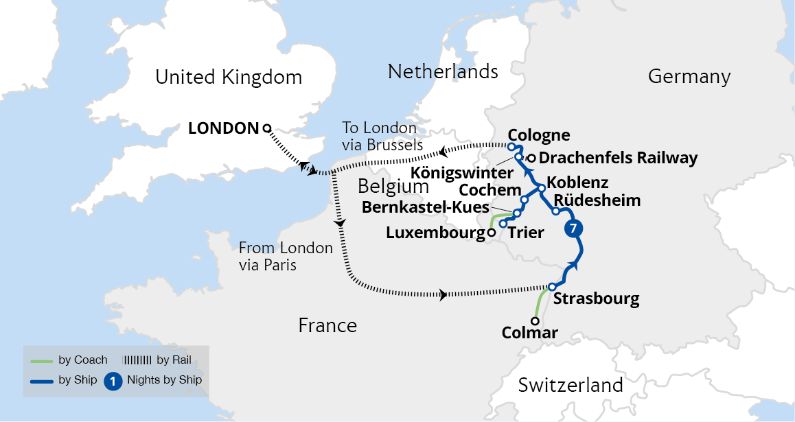 Celebrate one of Europe's most spectacular river events on this seven-night cruise along the Rhine and Moselle. From Strasbourg to Cologne, journey through vineyard-lined valleys and storybook towns, with a highlight evening in Koblenz for the dazzling Rhine in Flames celebrations, where our ship is decorated as part of the festival. Along the...