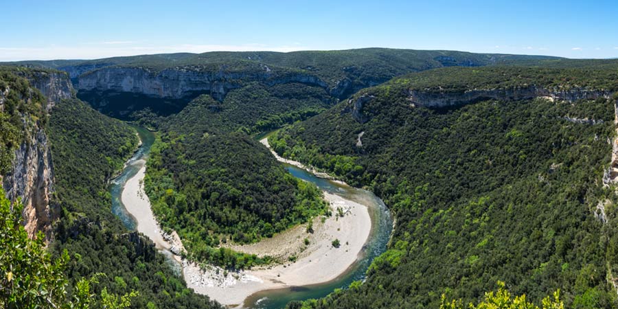 • Ardèche Gorge: Visit the 'Grand Canyon of Europe' and marvel at the towering limestone cliffs and striking green waters of the Ardèche River. Nearby, you'll find lush green forests and the Pont d'Arc, a natural stone arch that marks the entrance to the canyon.