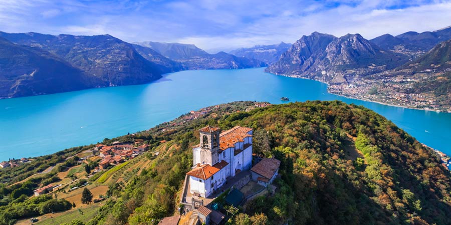 With a peak more than 1,360 feet above the surface, Monte Isola is one of the tallest lake islands in Europe. Reached by regular ferry from Sulzano, this mountain in a lake has a culture all of its own, and many captivating places to visit on a day out.