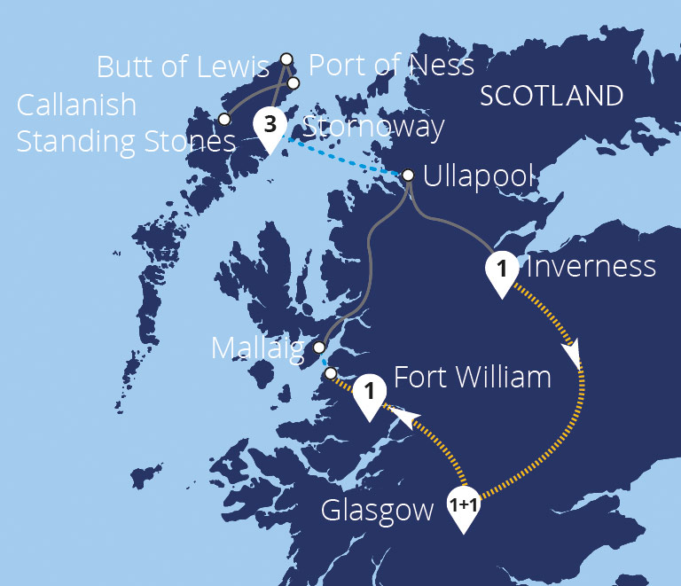 Read moreWild beauty and ancient wonders await on this holiday to Scotland's Outer Hebrides - also known as the Western Isles - and the dramatic Scottish Highlands. From the dynamic city of Glasgow, we travel on the world-renowned West Highland Line to Fort William, as a moving picture of mountains, lochs and heather-clad moors unfolds.